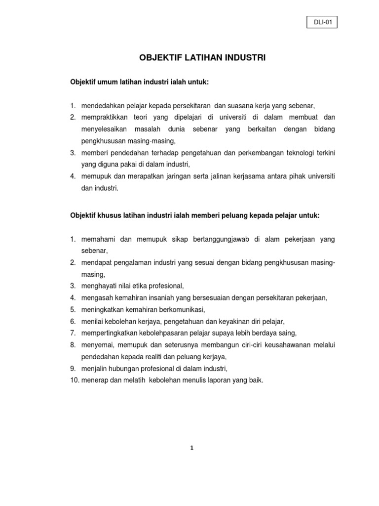 Dl 01 Objektif Dan Skop Latihan Industri Pdf